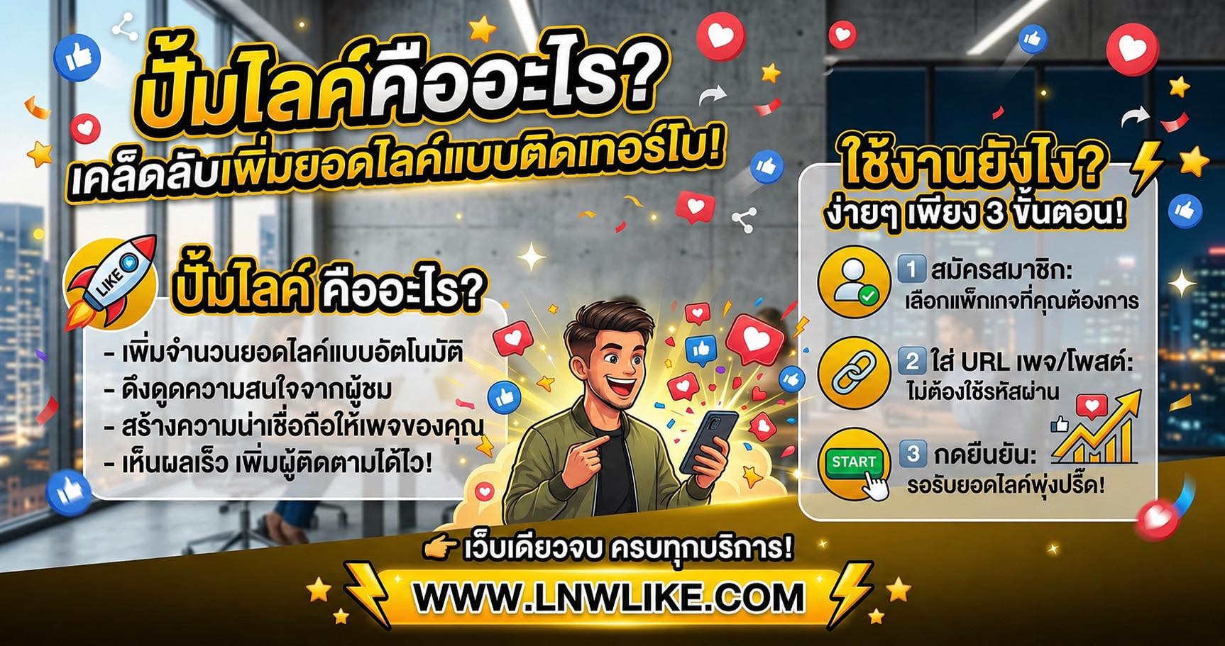 ในยุคที่โซเชียลมีเดียกลายเป็นพื้นที่หลักในการทำธุรกิจและการสร้างตัวตน "ยอดไลค์" (Likes) ไม่ได้เป็นเพียงแค่ตัวเลขธรรมดา แต่มันคือ Social Proof หรือหลักฐานทางสังคมที่ช่วยสร้างความน่าเชื่อถือให้กับเพจ ร้านค้า หรือบุคคลนั้นๆ จึงไม่แปลกที่บริการ "ปั้มไลค์" จะกลายเป็นทางลัดที่หลายคนให้ความสนใจ